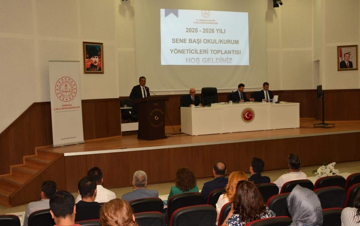 Kırıkkale Millî Eğitim Müdürü Rahmi Güney, 2025-2026 eğitim öğretim yılı sene başı değerlendirme toplantısında kurum yöneticileri ve kentteki çeşitli kademlerde görev yapan okul müdürleriyle bir araya geldi.